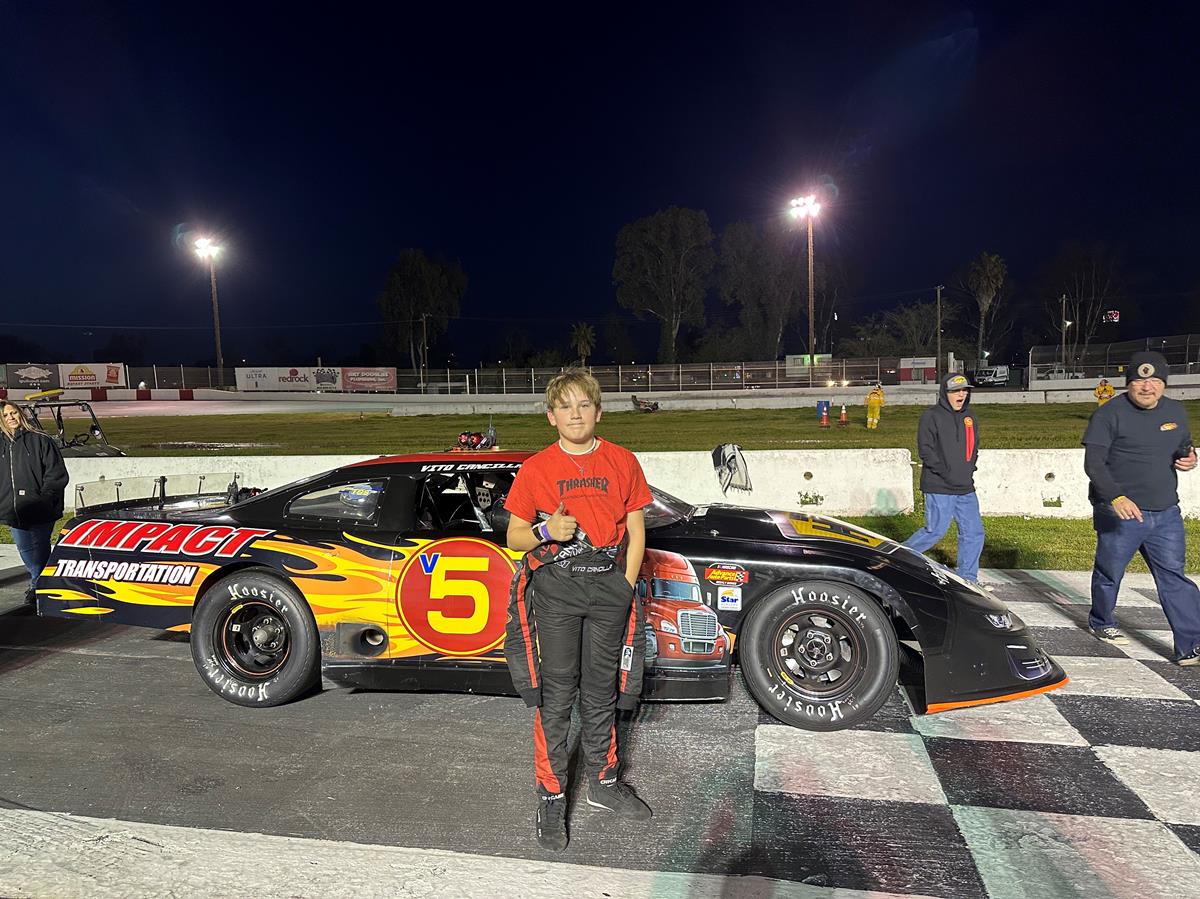 11 year young Vito Cancilla also raced PRO in which he qualified second quick just behind Matt Erickson who found his way back to victory lane on the first club race of the 2023 racing season. Ericksons car was hooked up for the 40 lap feature but he was chased by the rising young 11 year old star Vito Cancilla that came home in second place. Third was Darrel Herzog, fourth was Henk Gaalswyk Jr, and rounding out the top five was Rick Thompson.
